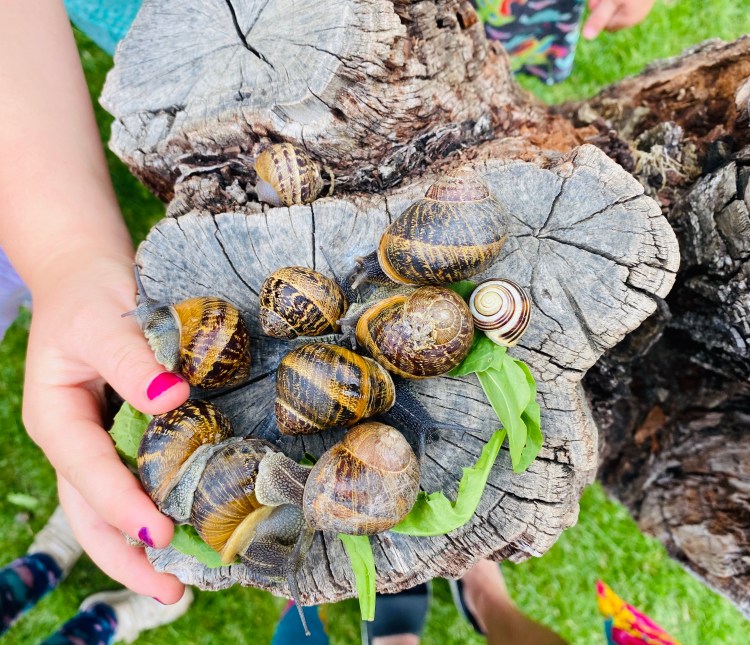 - Schnecken „checken“ am Baumstumpf (Amelie, Valerie und Johanna)